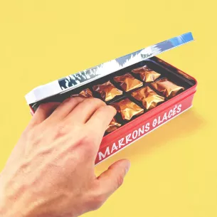Collectible metal box “Christmas Market” containing 8 candied chestnuts, 160g.