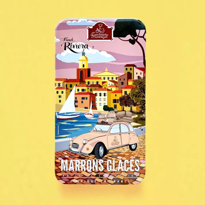 Collectible metal box “French Riviera” containing 8 candied chestnuts, 160g.