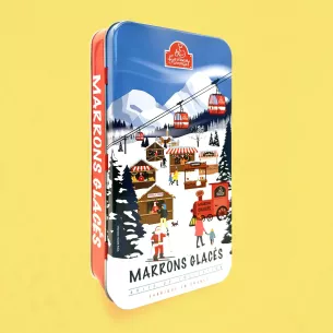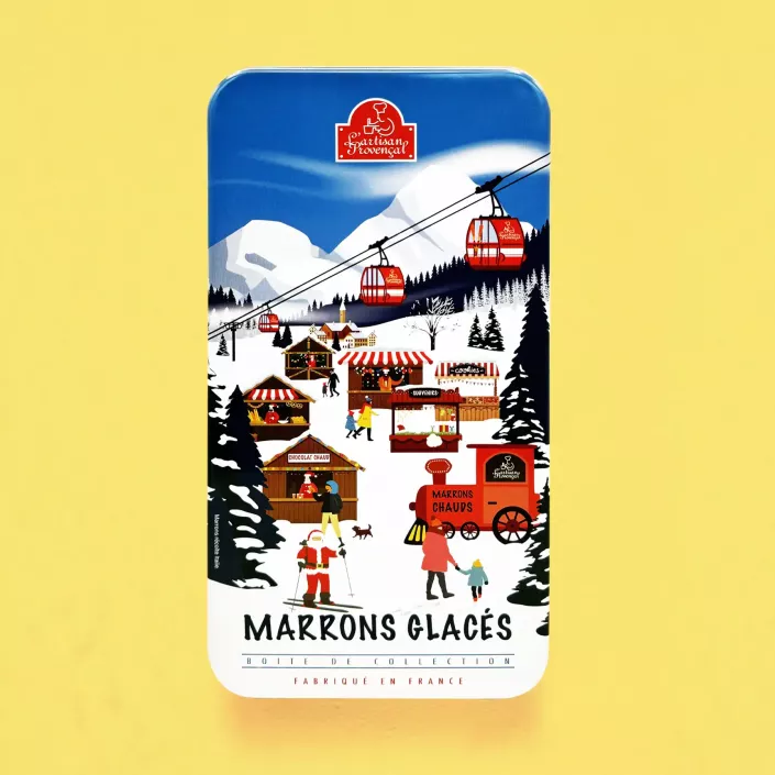 Boîte en métal de collection "Marché de Noël" de 8 marrons glacés 160g.